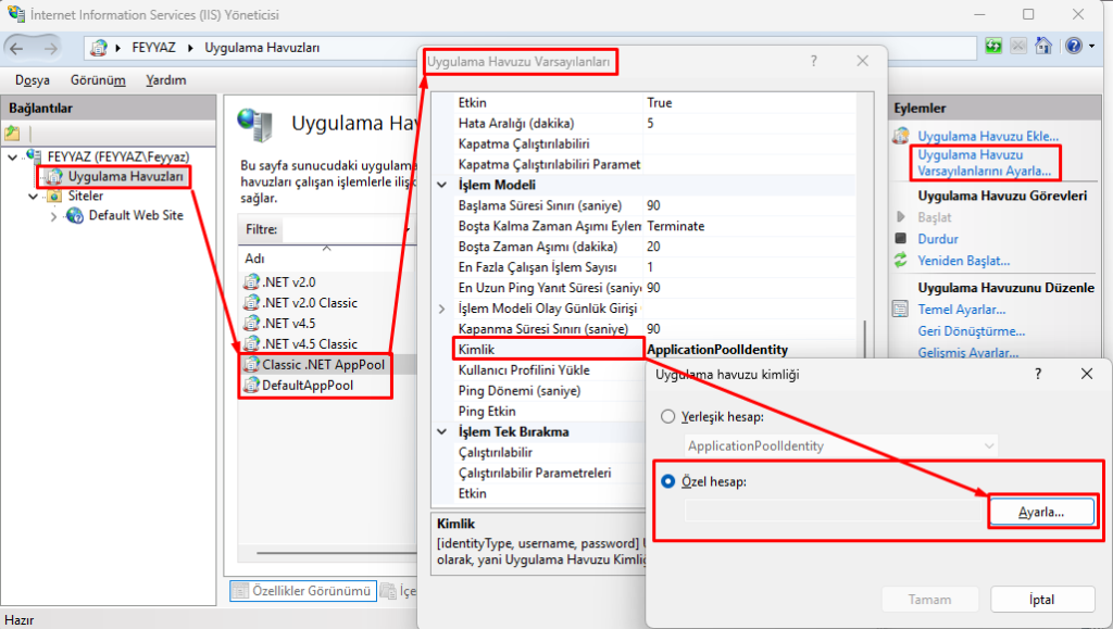 IIS Uygulama Havuzu Kullanıcısını Değiştirerek Yetkilendirme