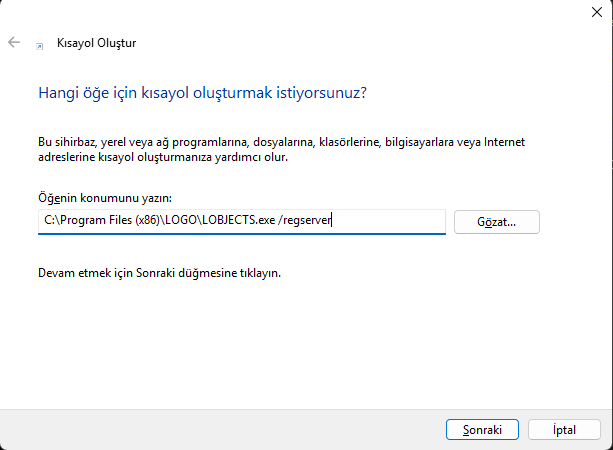 Not: Kesinlikle Browse ederek Lobjects.exe dosyasını manuel olarak seçmeyin. Bu yöntem, sistemler arası taşınmalarda ve sürüm değişikliklerinde sorun çıkarabilir.