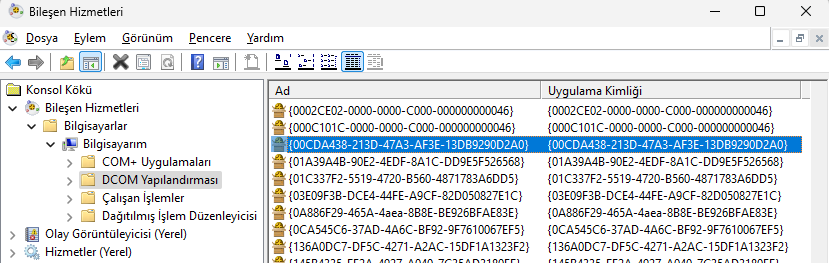 DCOM Config içinde Lobjects’e ait CLSID (örnek: