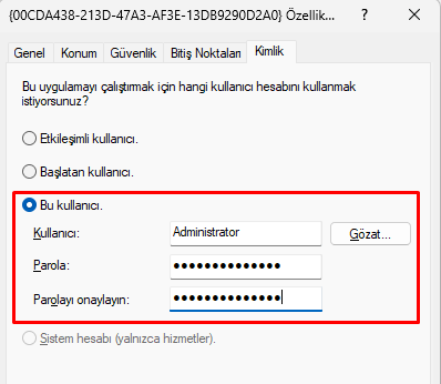Bu yöntemde DCOM ayarları yapmadan, doğrudan yetkili kullanıcı üzerinden nesne çağrısı yapılabilir.