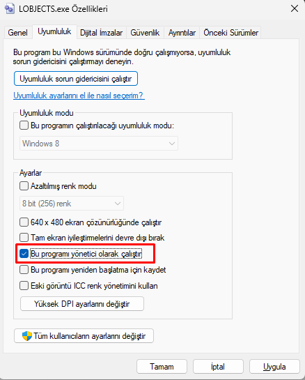 Path kısmında Lobjects.exe’nin doğru dizini gösterdiğine emin olun.