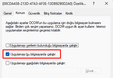 Lobjects.exe’nin web üzerinden sağlıklı çalışması için DCOM üzerinde doğru kullanıcı yetkilendirmesi yapılmalıdır.